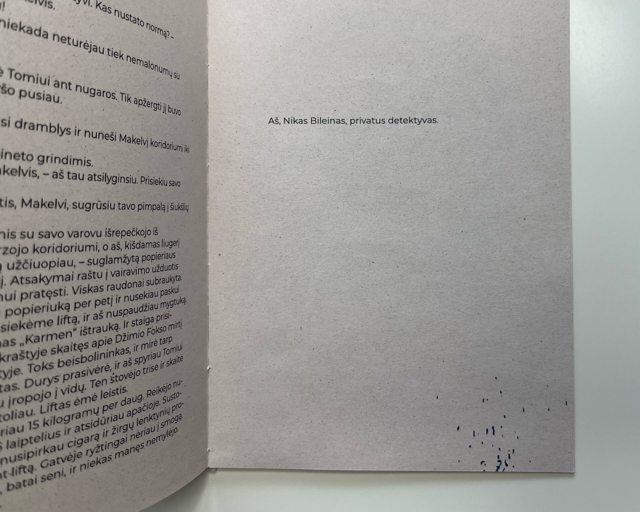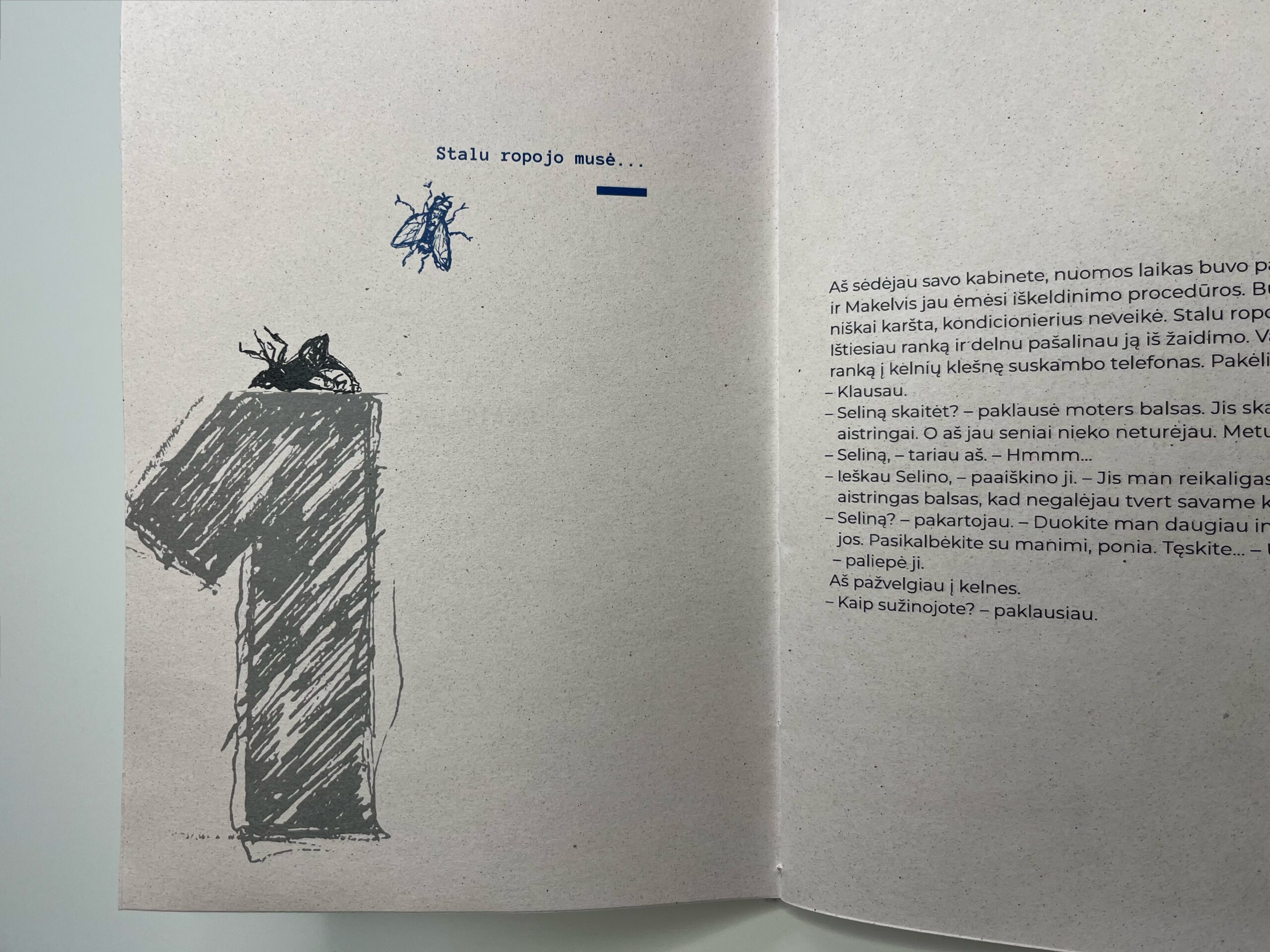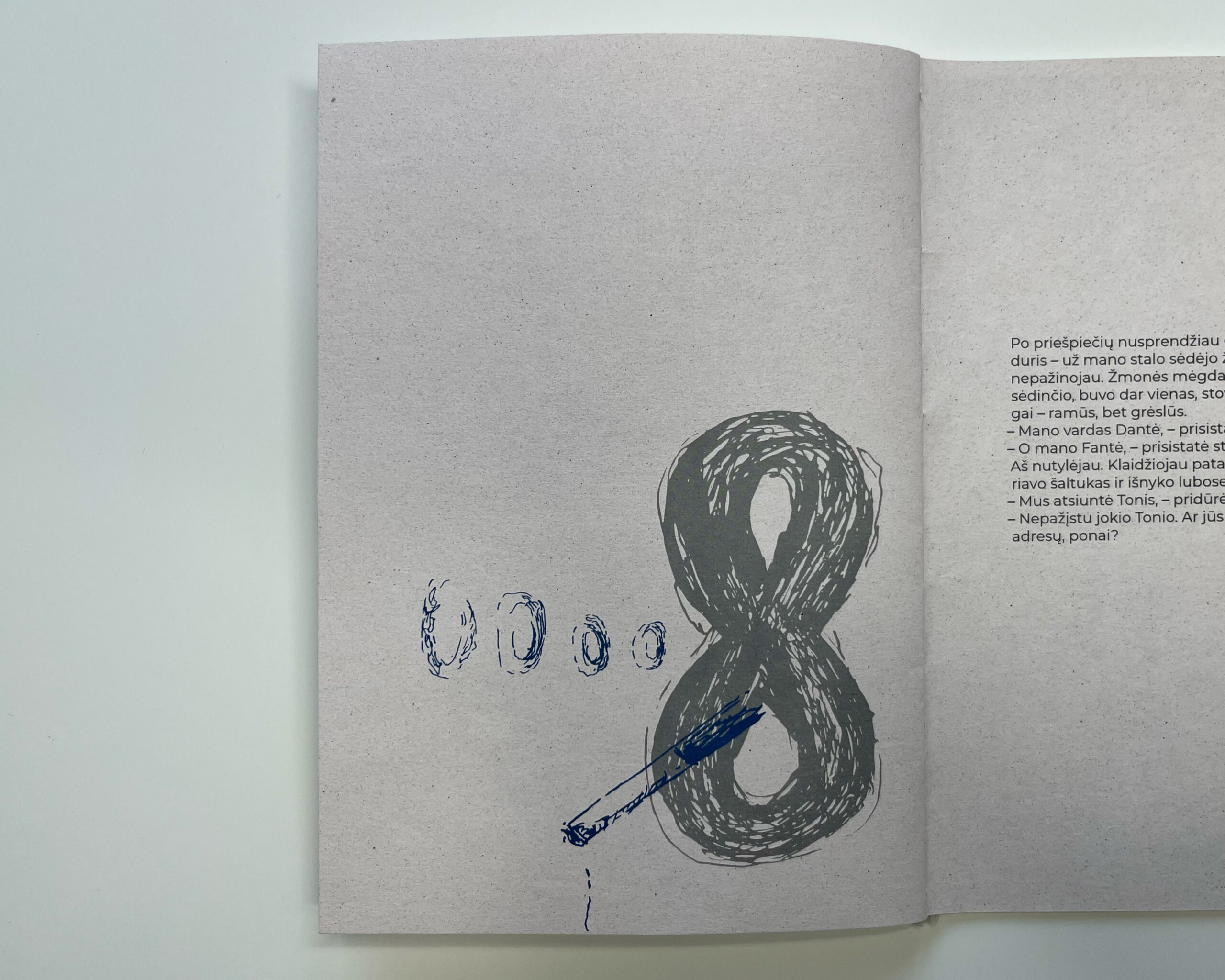 An illustrated and designed excerpt from Charles Bukowski’s Pulp (Skaitalas in Lithuanian). The hand-drawn, harsh black-and-white line illustrations convey the vulgarity, rawness, and cynical attitude characteristic of the author’s work.