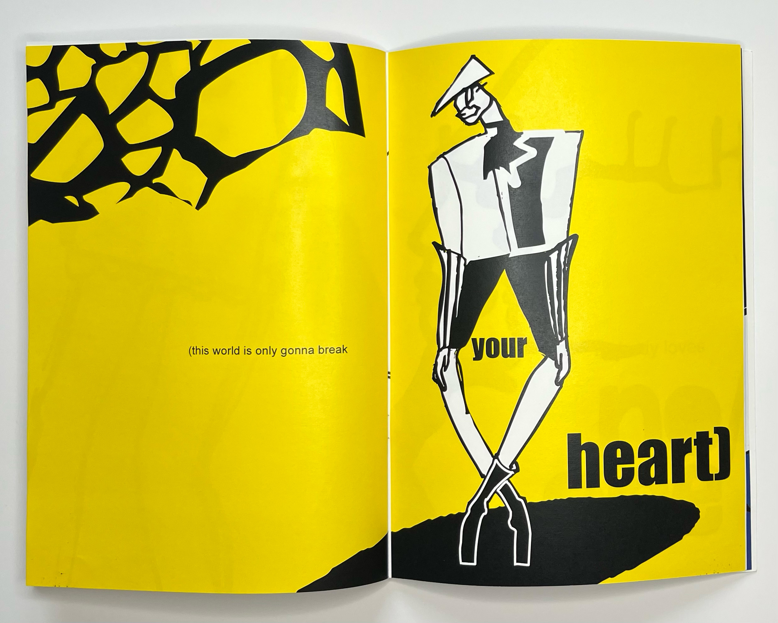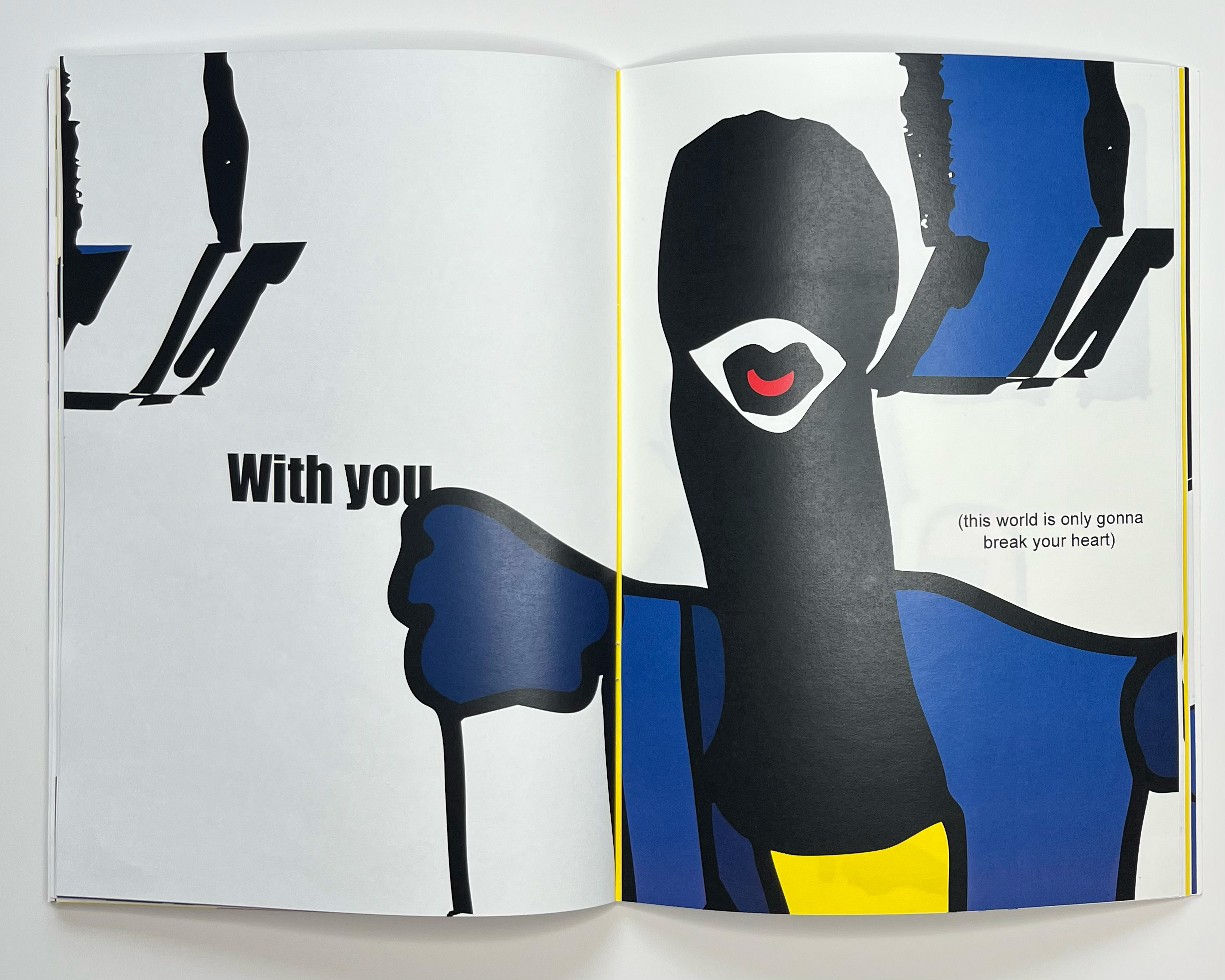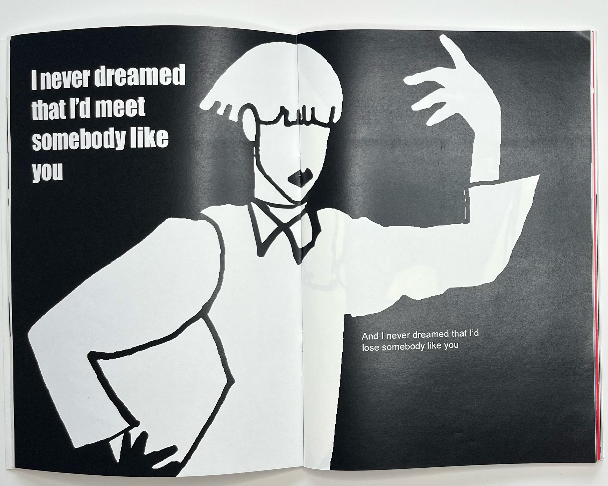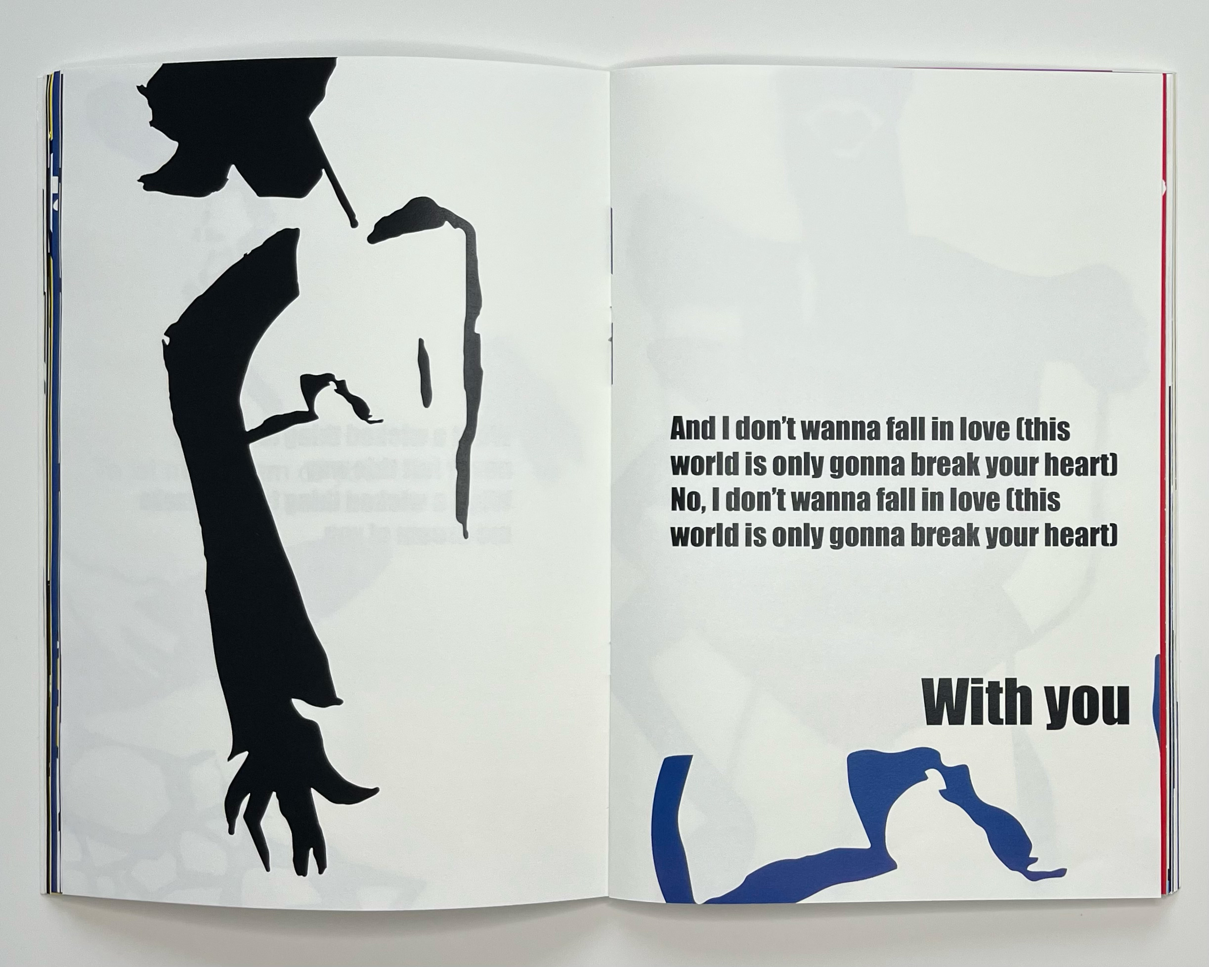 A publication interpreting themes of melancholy, passion, and pain, inspired by the song Wicked Game by Chris Isaak. The visuals create a dreamlike space where love becomes a game without clear rules. The publication features hand-drawn illustrations, strong contrasts in color, and shifting text sizes and rhythm that follow the emotional intensity of the song.